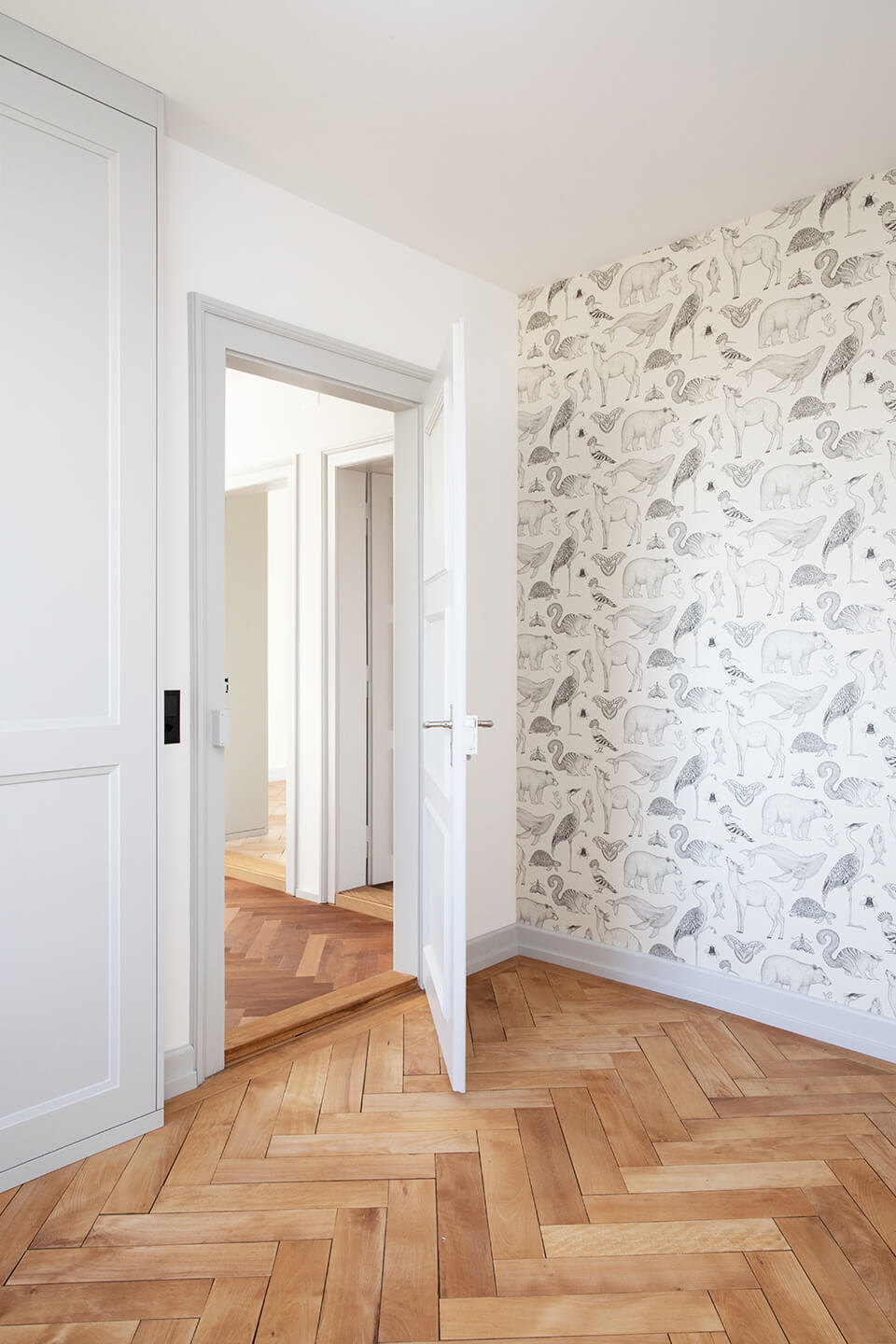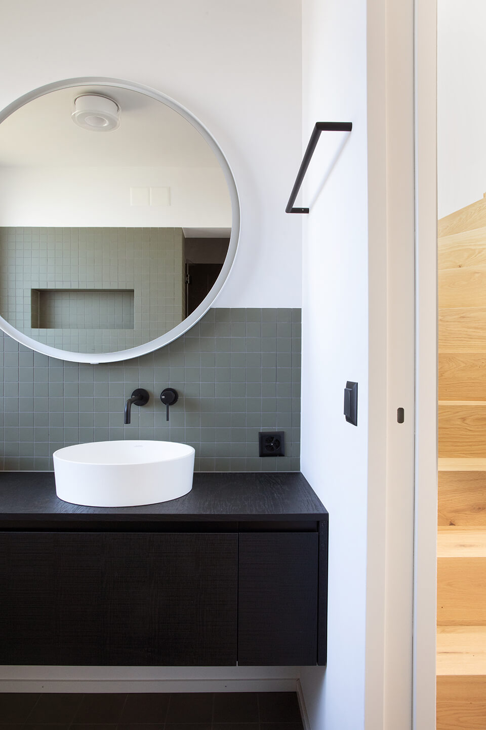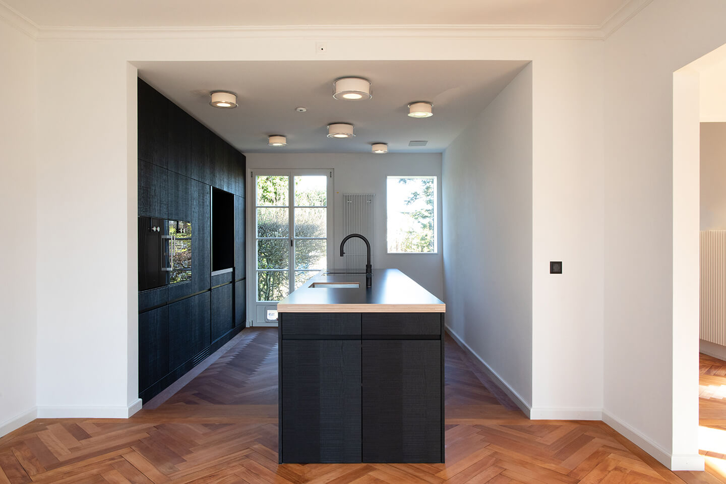 Umbau eines dreigeschossigen Einfamilienhauses aus dem Jahr 1921 für eine junge Familie. Dank einer Neuorganisation der Grundrisse entstanden offene Räume und fliessende Übergänge.
