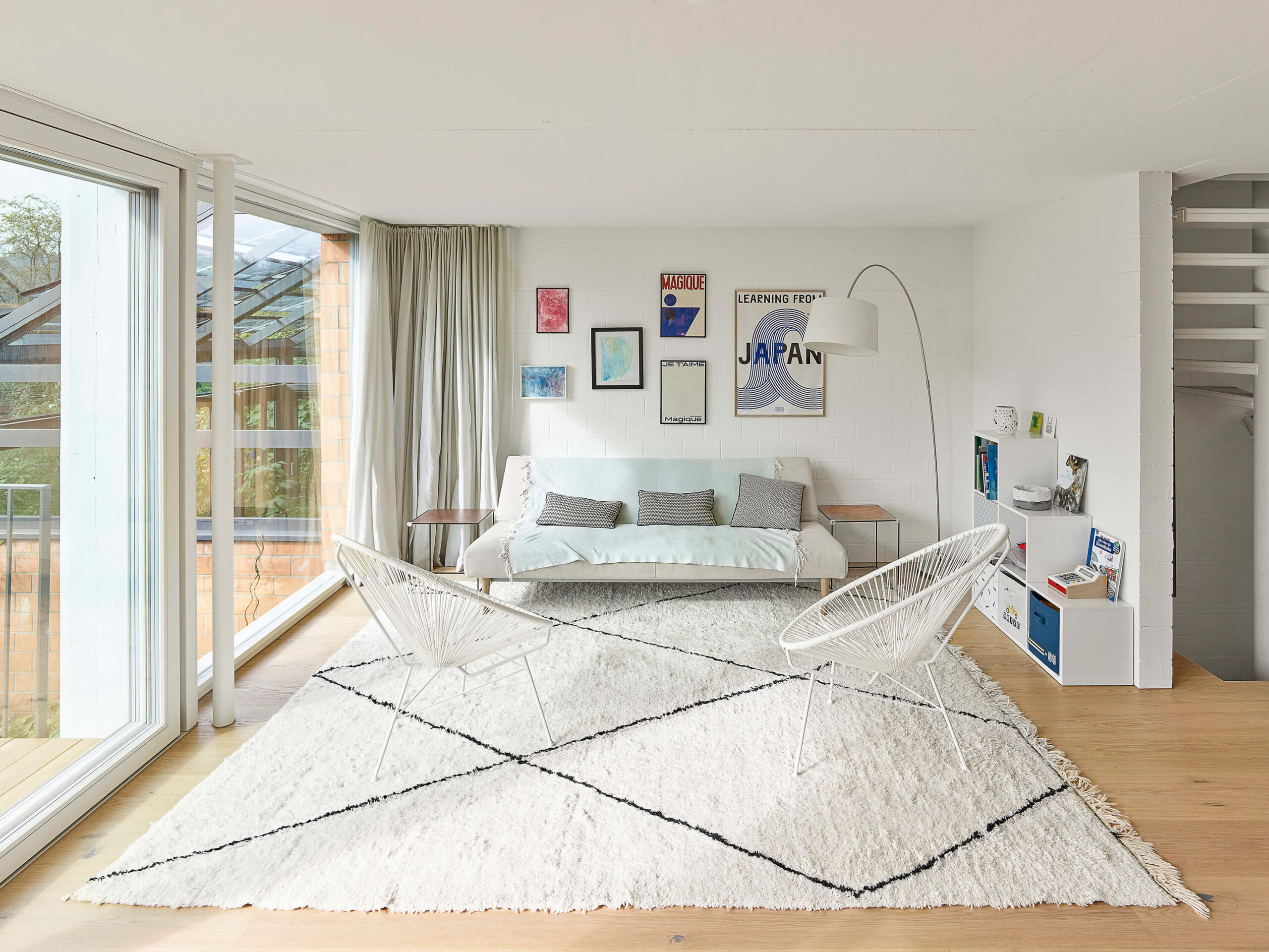 Das Reiheneinfamilienhaus ist Teil einer Wohnsiedlung aus den 1980er Jahren. Im Zuge der umfangreichen Sanierung wurde das Haus an die Bedürfnisse einer jungen Familie angepasst und mit hellen Materialien aufgefrischt.