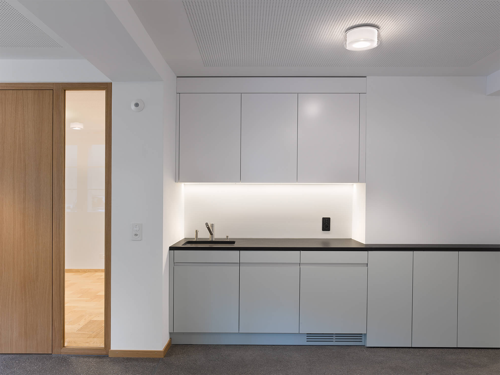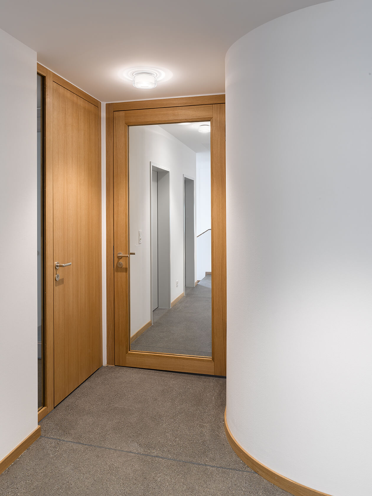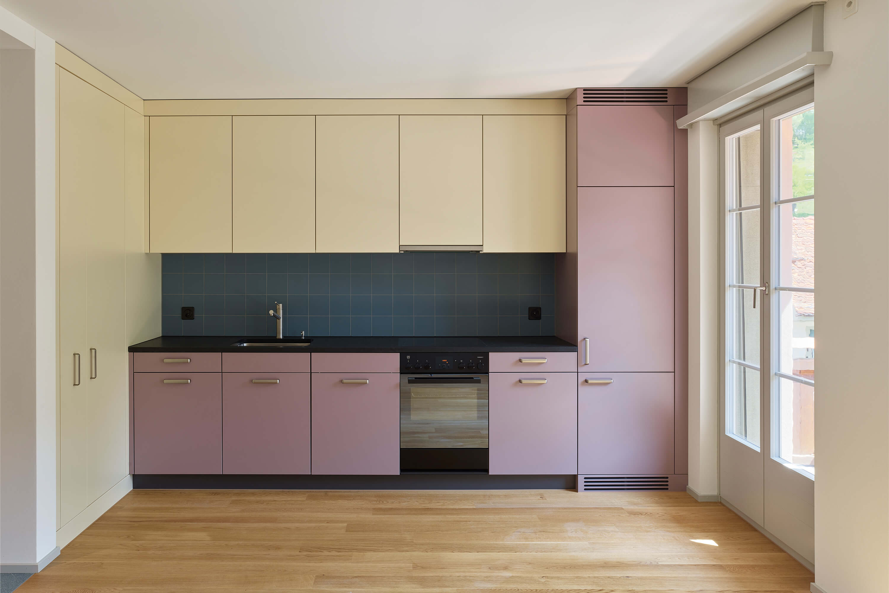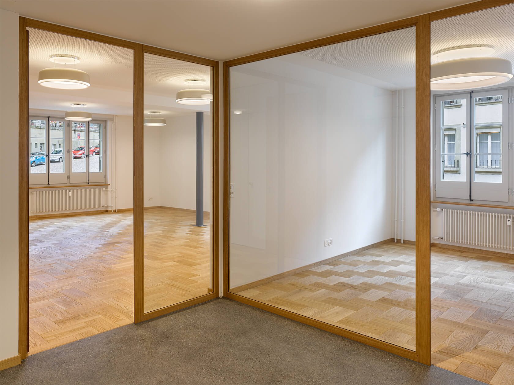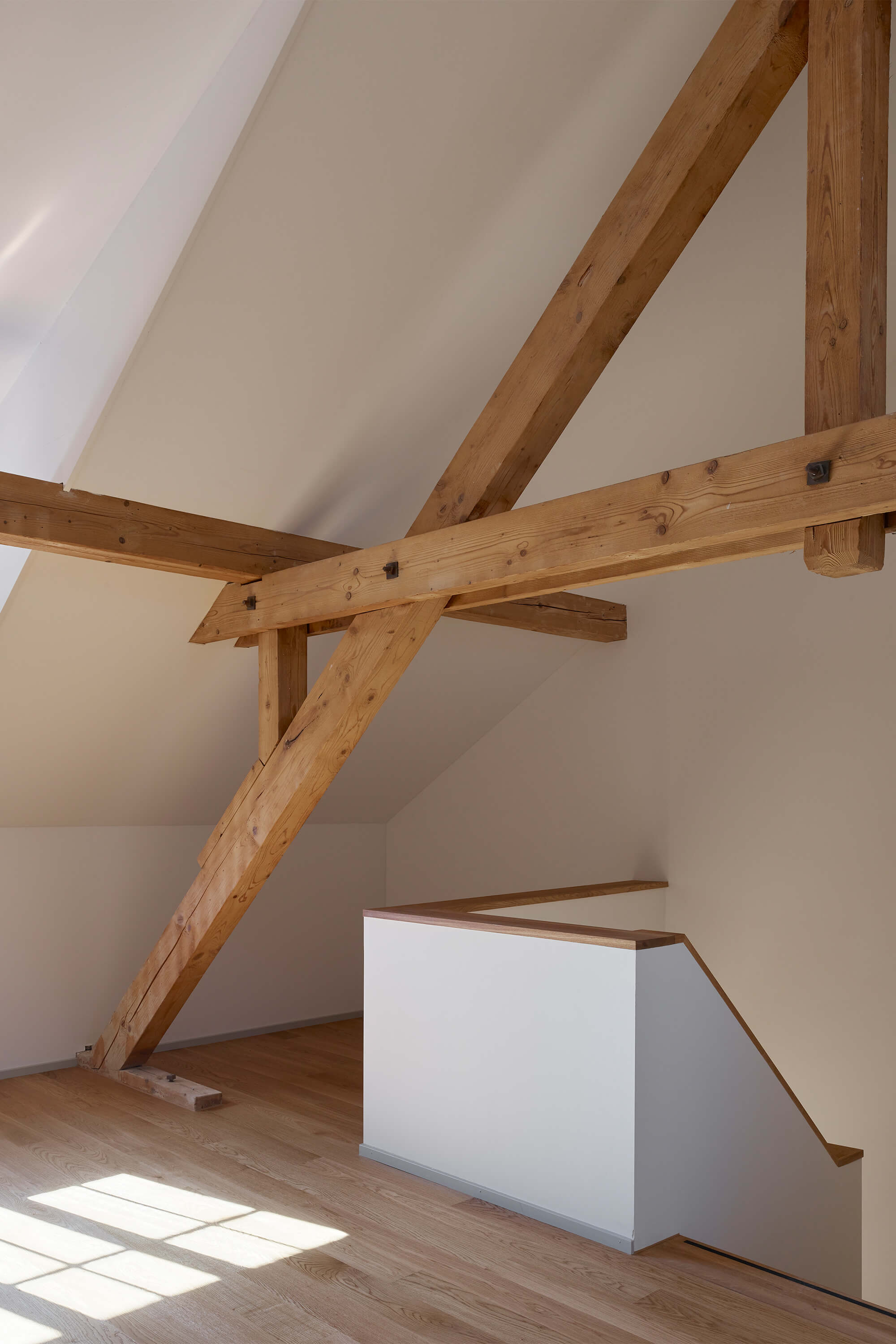Dabei wurden Räume neu angeordnet, ein Treppenhaus entfernt, Betondecken gefräst, der Lift vergrössert, alle Hausinstallationen ersetzt, der Kirchgemeindesaal vergrössert, eine neue Industrieküche eingebaut, die Dachgeschosse ausgebaut und das Dach gedämmt und neu eingedeckt. Für die Farbgebung in den Wohnungen dienten die Farbstimmungen der 50er Jahre als Referenz, im Kirchgemeindehaus wurden Farben dezenter eingesetzt.