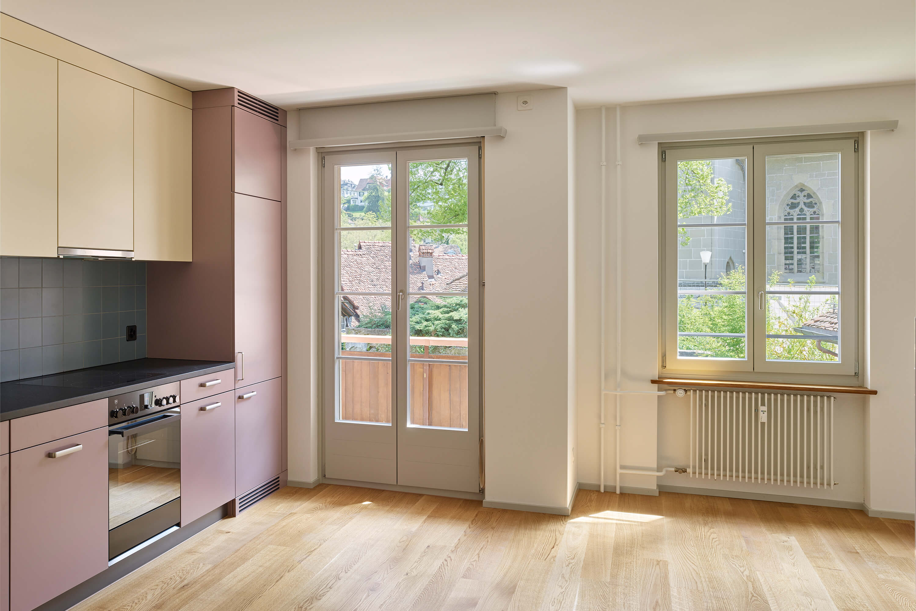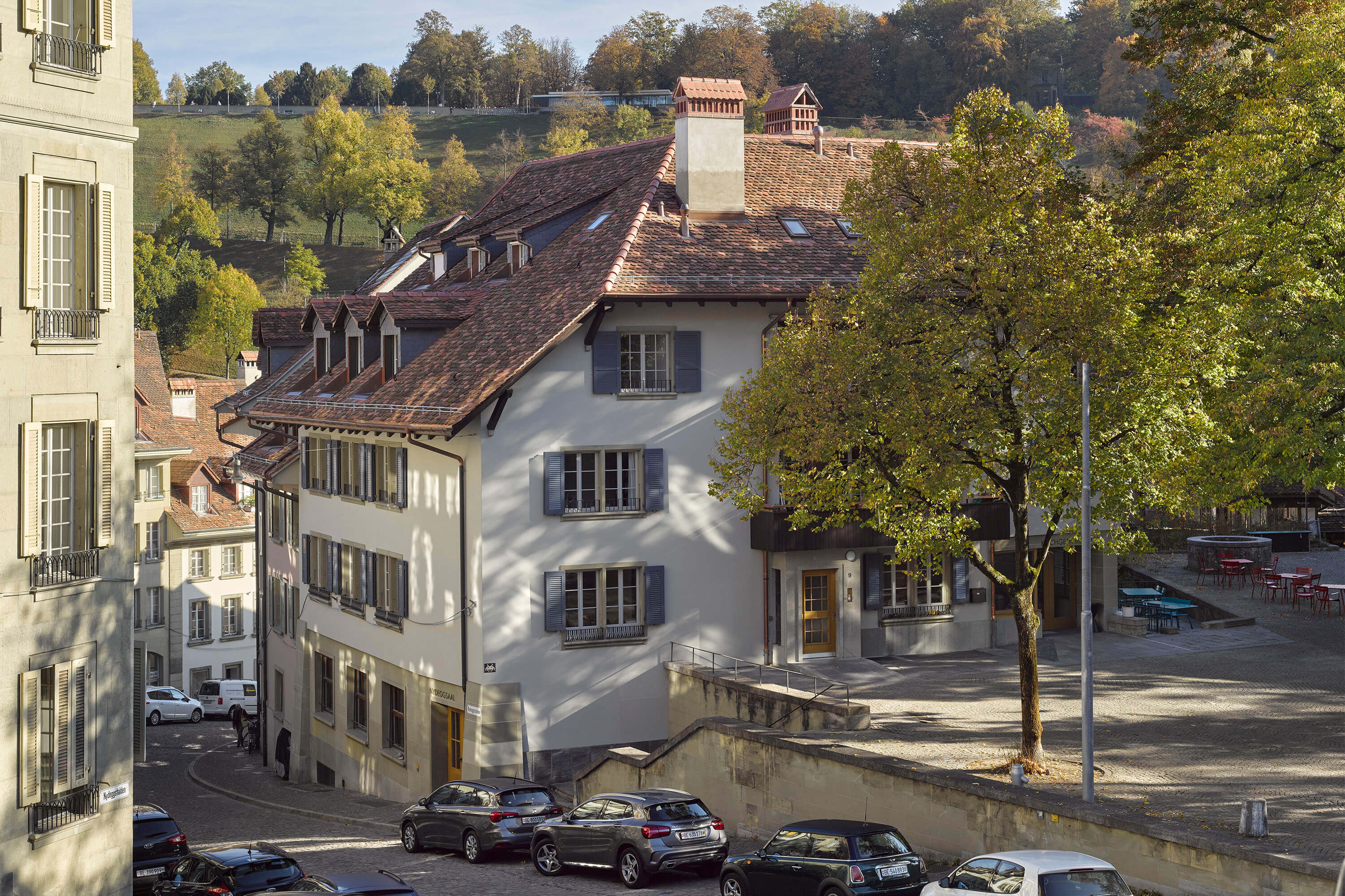 Umbau des ehemaligen Altersheim Nydegghof in der unteren Berner Altstadt in zwei Wohnhäuser mit 15 Mietwohnungen und einem Kirchgemeindehaus.