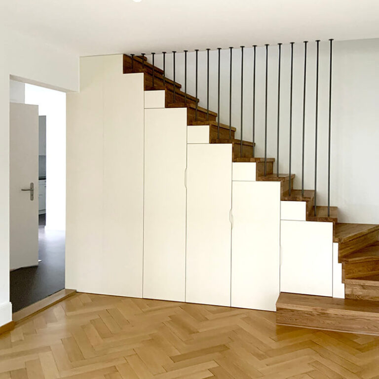 An der Trechselstrasse wurden zwei 3-Zimmerwohnungen mit einem neuen internen Treppenaufgang zu einer Maisonette-Wohnung zusammen gelegt.