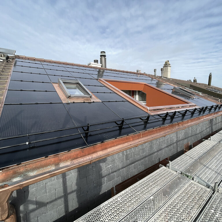 Nach der neuen Schiefereindeckung beim Mansarddach des denkmalgeschützen Hauses, wurde nun auch die PV Indachanlage fertig gestellt.